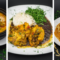 Friday special. Traditional brazilian country chicken recipe cooked in its own juices with spices and fresh herbs. Served with black beans, rice, and brazilian style collard greens salad.