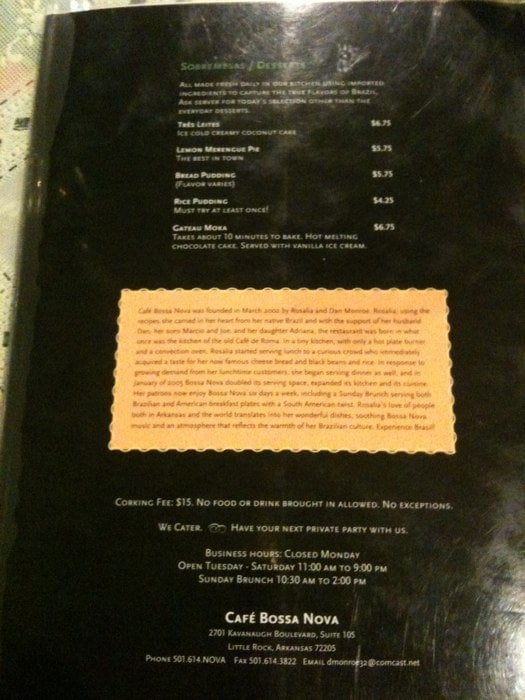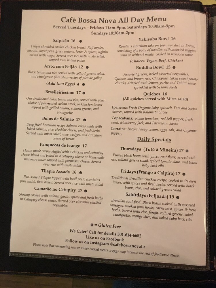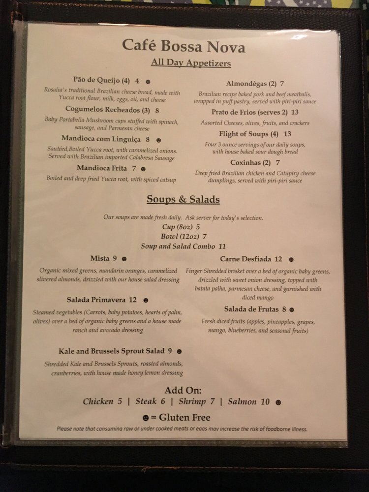 Cafe Bossa Nova Menu (2025 Update)